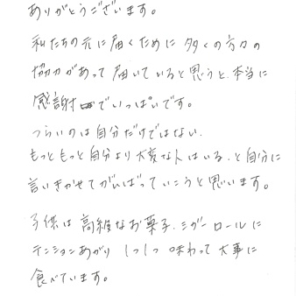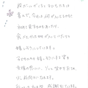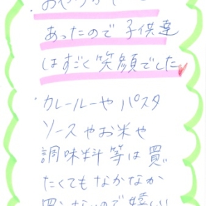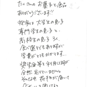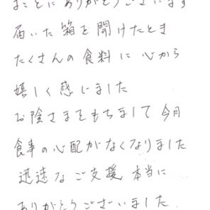 皆さまからの支援が多くの方へ届いています。2hjの活動を通じて支援を受けた方からの声を、一部ご紹介いたします。