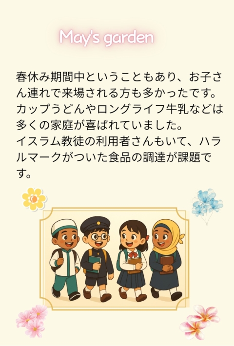Items like cup udon and long-life milk were especially appreciated by a lot of families.