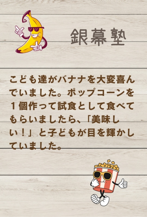 The children were really happy to receive the bananas. We made one pack of popcorn and gave it to them as a sample — the children’s eyes lit up as they exclaimed, “It’s delicious!”