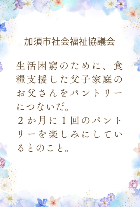 He mentioned that he looks forward to the pantry, which is held every two months.