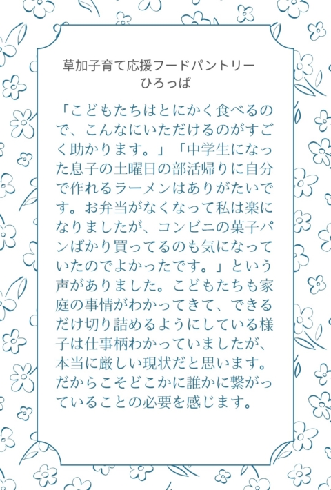 “I’m really grateful for the ramen that my son, who just started junior high school, can cook by himself after Saturday club activities. It’s become easier for me since I no longer have to prepare his lunch, but I was worried because he was only buying sweet bread from convenience stores. So this has been a great help.”