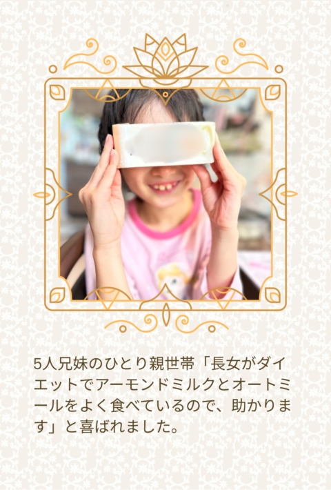 This is a happy comment from a single parent family with a total of five boys and girls. “Almond milk and oatmeal are helpful because my eldest daughter often eats them for diet.”