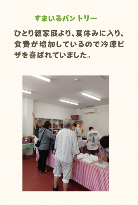 A single parent family was happy to receive frozen pizza because their food expenses were increasing during summer vacation.
