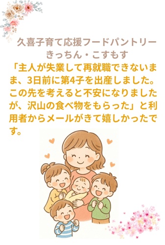 “My husband lost his job and still hasn’t been able to find new work. Three days ago, I gave birth to our fourth child. I was feeling anxious about the future, but receiving so much food brought me relief.”