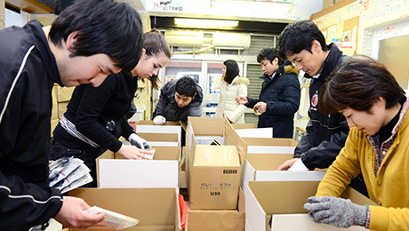 倉庫でセカンドハーベスト・ジャパンへの寄贈食品の賞味期限を確認し種類ごとに仕分けをする活動や食品を必要としている世帯へ発送する食品パッケージの梱包作業です。