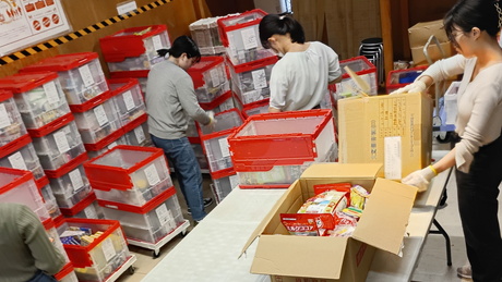 2HJ(埼玉拠点)に食品を取りに来る方たちへお渡しする食品の準備になります。